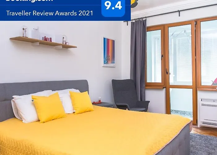 Furnished with a sofa set and a work desk, the 1-room Designer & Luxurious, Business, One Bedroom Apartment In Top Central Sofia comprises a balcony and a seating area fitted with an air conditioner. In order to enhance guests' leisure time, a television are provided. Featuring a walk-in shower and a separate toilet, a bathroom provides a hairdryer and bath sheets.